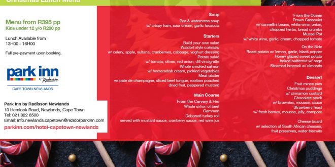 PARK INN by Radisson Hotel Newlands Executive chef, Morne Botha, has created an innovative menu for the hotel’s gourmet Christmas lunch buffet this festive season, certain to appeal to families, friends and loved ones in search of an unforgettable culinary experience.